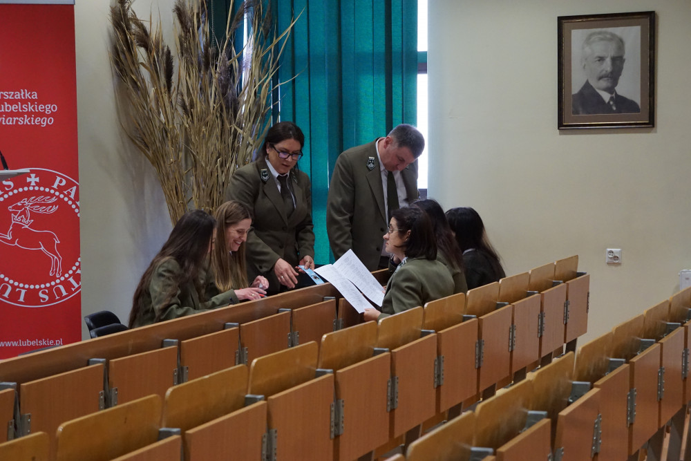 Otwarcia wydarzenia i powitania uczestników Etapu okręgowego XLI Olimpiady Wiedzy Ekologicznej dokonał Pan Andrzej Kardasz – Zastępca Dyrektora Zespołu Lubelskich Parków Krajobrazowych. Po nim zabrała głos Pani dr Jolanta Rodzoś – Dziekan Wydziału, goszcząca nas tego dnia, dodając uczniom otuchy i życząc wszystkim powodzenia.
